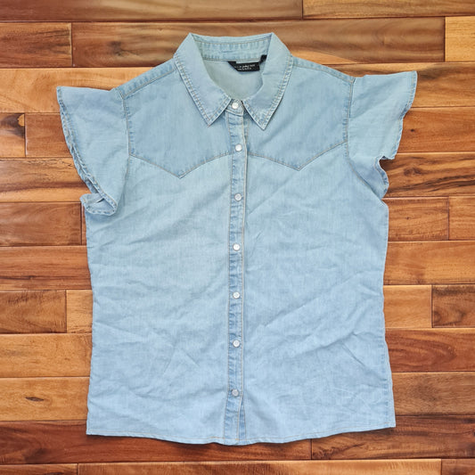 Denim & Pearls Flutter Sleeve Top