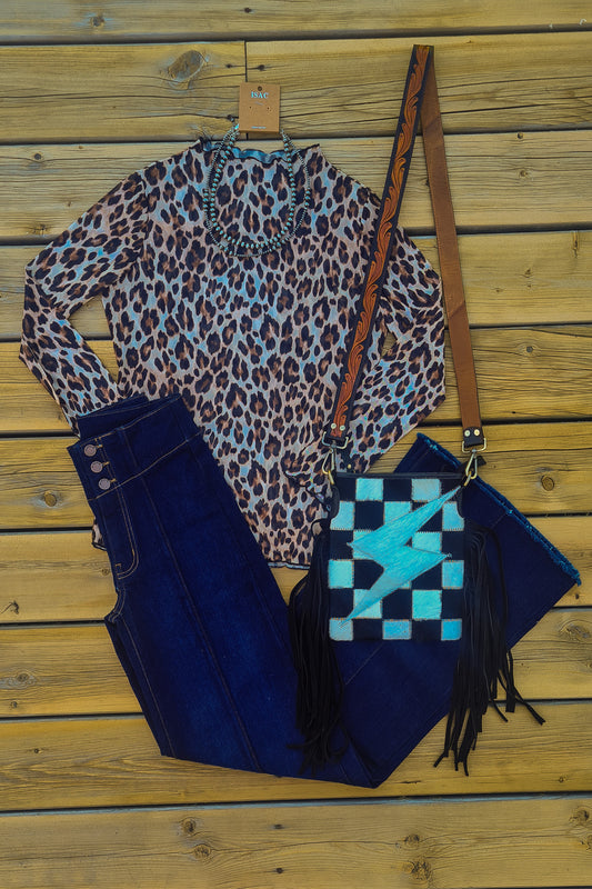 Leopard Layering Mesh Top